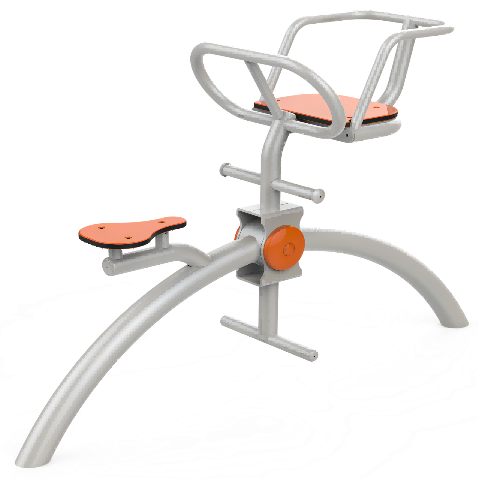3、锻炼方法:将儿童抱起坐于坐凳里面,双手握紧扶手,确认儿童坐稳后家长在坐于对面坐凳上面,手紧握扶手,脚踩踏板,做双臂伸缩运动。